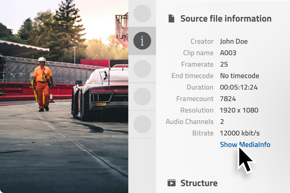 Just select a clip in any playlist, click on the Metadata tab in the player sidebar, and you’ll find a new MediaInfo section with all available details – instantly and without ever leaving Webgate.io.